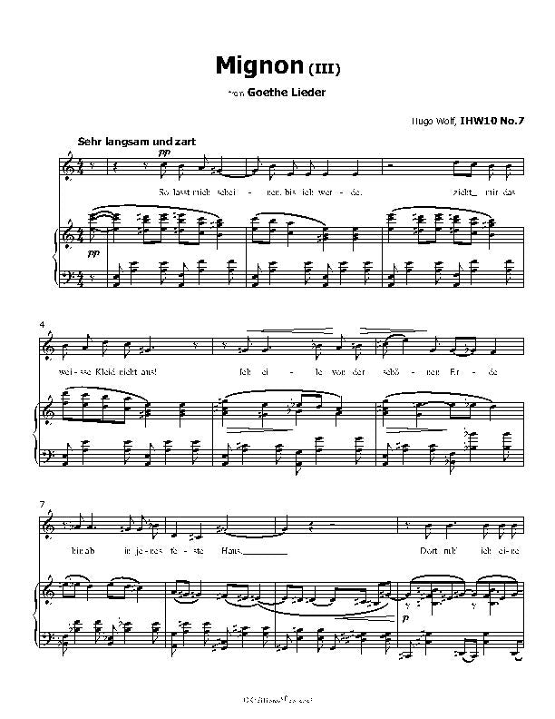 Mignon III, from 'Goethe Lieder‘, IHW10 No.7, by Hugo Wolf(1860-1903), different versions, different formats, after payment you will receive the digital file.